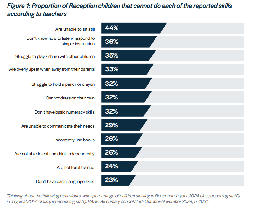 The survey also revealed that 41% of parents had not heard about school readiness before their child started Reception, and 21% reported receiving no health visitor appointments before school began. These gaps in early support and information contribute to children arriving unprepared.