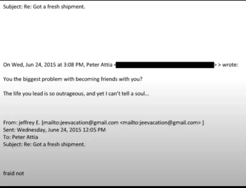 The message shows that Attia was apparently aware of Epstein’s lifestyle, and his silence means that he was complicit. As a licensed physician, Attia would have been classified as a mandated reporter, legally and ethically obligated to report suspected endangerment of vulnerable populations, particularly children.