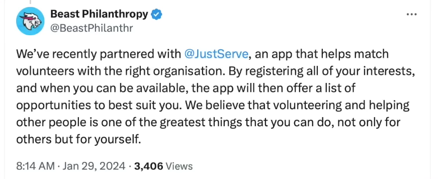 In 2004, MrBeast promoted JustServe, a service-oriented platform owned and operated by the Mormon Church.
