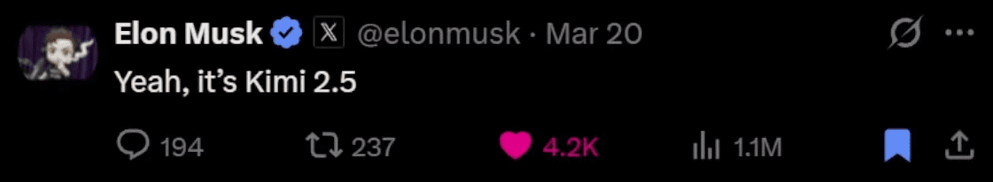 That changed quickly. A user named Fynn noticed that internal URLs were still referencing the model as Kimi K2.5, a high-performing open-source model developed by Moonshot AI, a Chinese company.