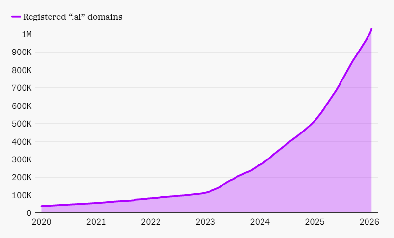 The island nation of roughly 15,000 people has watched registration numbers climb from hundreds of thousands to over one million “.ai” domains as of early January 2026, according to data from Domain Name Stat.
