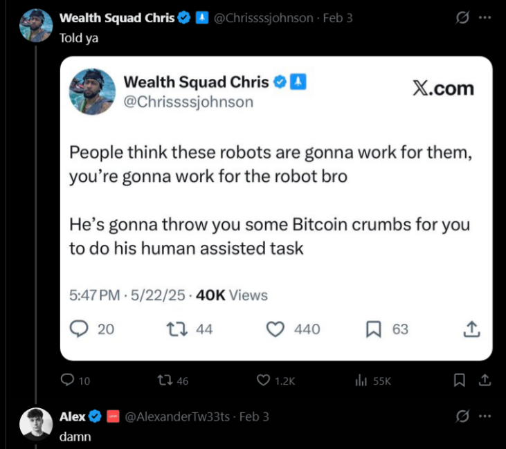 However, some online commentators have pointed out the unsettling reversal at play. Rather than robots serving humans, humans may soon find themselves completing errands for autonomous agents in exchange for small crypto payments.