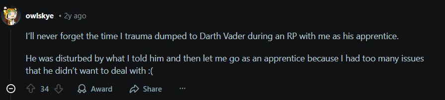 AI user Trauma Dumped On Darth Vader, And Got Fired As His Apprentice As A Result