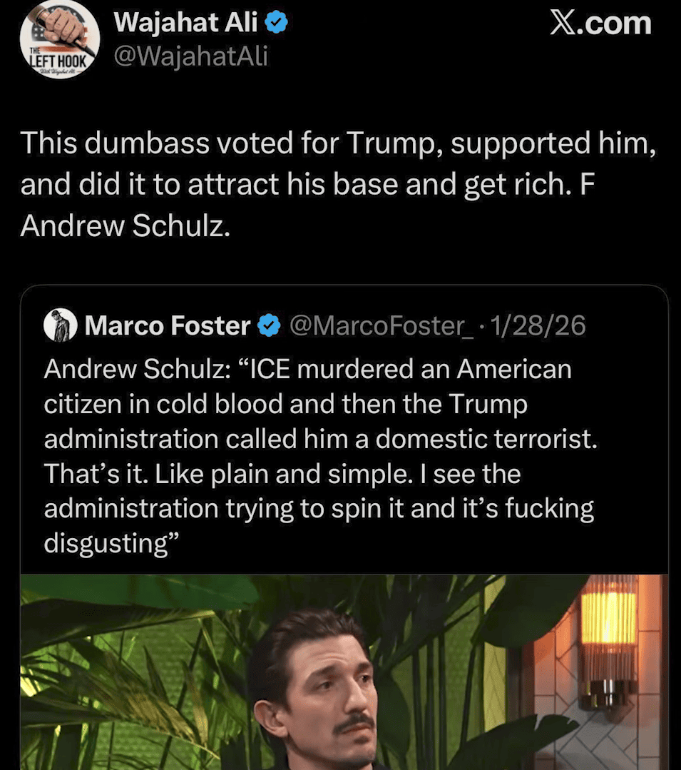 The comedian’s reversal has made him a target for bipartisan anger. A MAGA influencer called Schulz a grifter and said he despises him more than radical leftists.