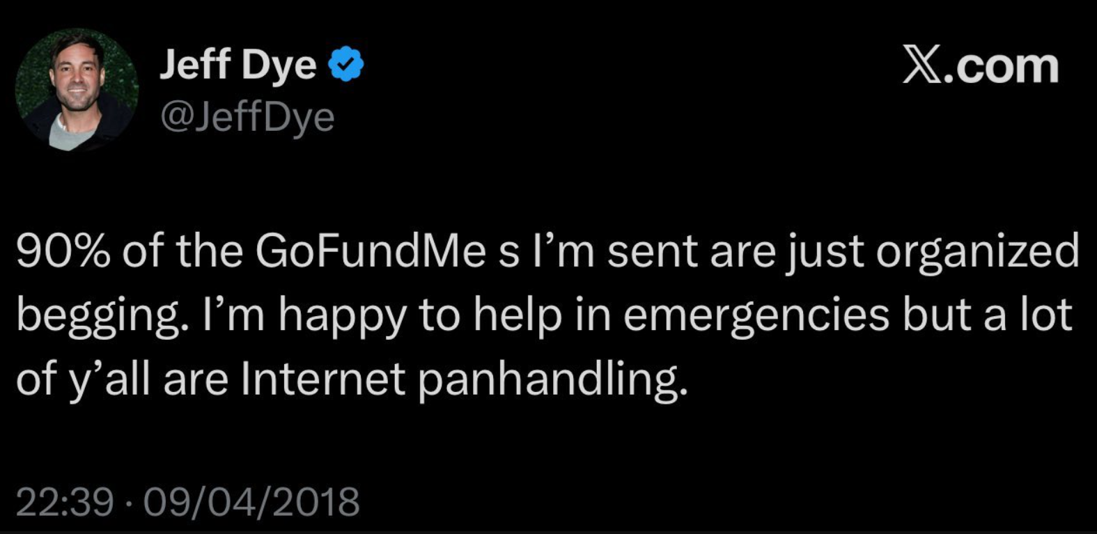 The irony wasn’t lost on critics who quickly unearthed Dye’s own past tweet declaring that “GoFundMes are supposed to be for emergencies only, and if or not, then it’s just organized begging and internet panhandling.” The comedian had essentially described his own future actions with uncanny precision.