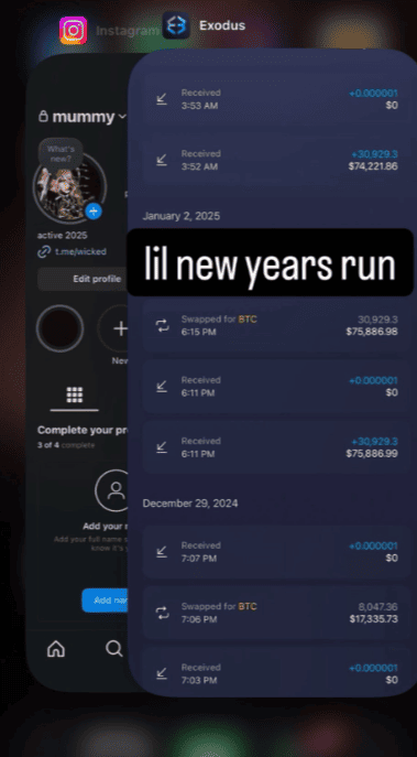 In one particularly damaging post from January 2025, he shared a screenshot that included both his Telegram username and Instagram handle alongside his wallet information. In February, he posted another screenshot displaying $237,000, which investigators matched to the Bitcoin address they were already tracking.