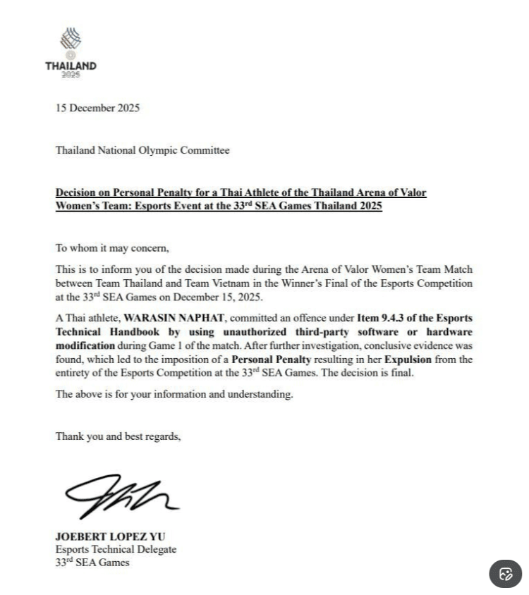 The scandal’s impact extended far beyond one player. Thailand’s women’s Arena of Valor team withdrew entirely from the tournament despite qualifying for the finals, finishing with zero medals. Talon Esports terminated Tokyogurl’s contract and required her to repay approximately nine months of training expenses. Garena banned her indefinitely from all Arena of Valor competitions.