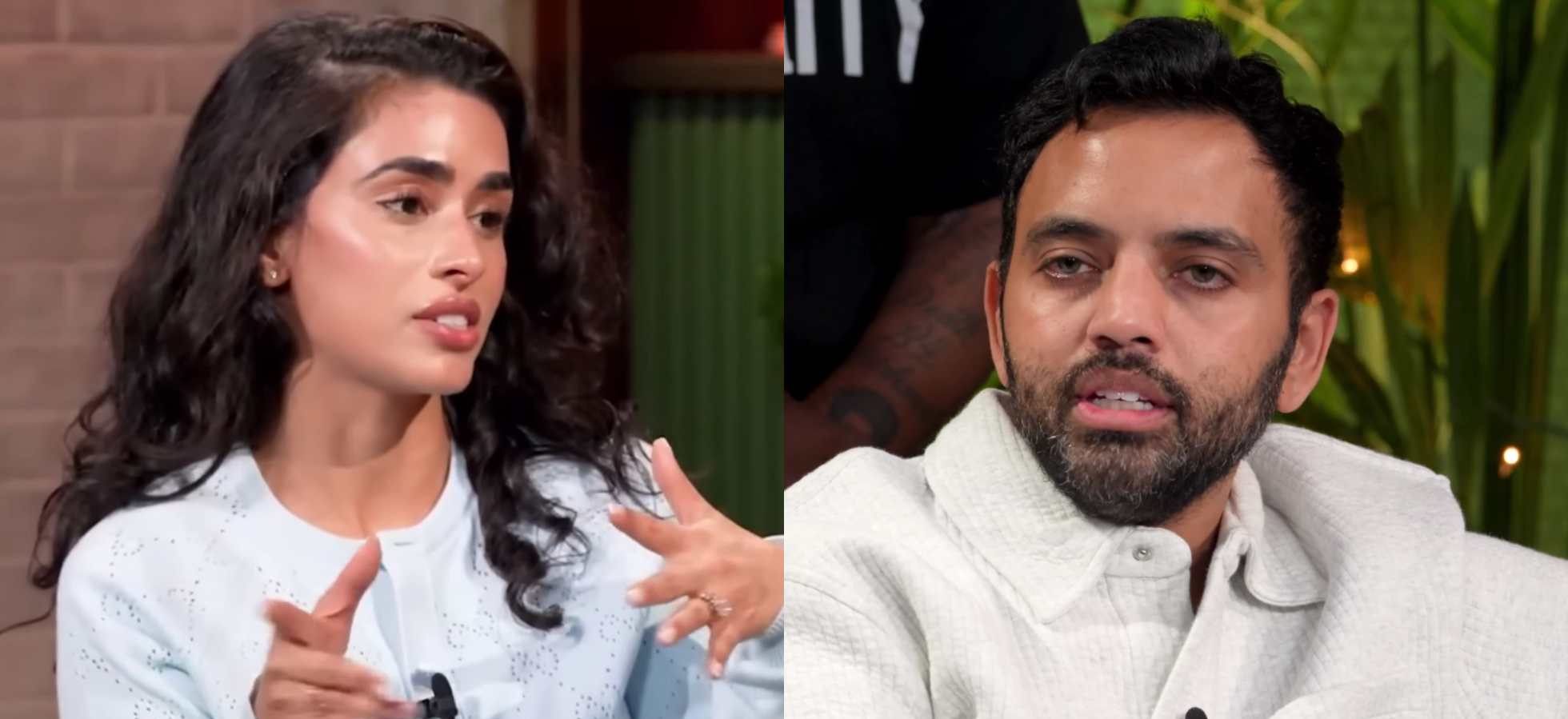 The fitness coach also addresses troubling relationship dynamics visible in the podcast appearance. Singh has been repeatedly filmed being rejected when attempting to kiss his wife in public, which she attributes to being raised in a family without physical affection. Doucette isn’t buying it: “Shy girls don’t go on podcasts talking about popping their p***ies to white frat boys nor about having or**es.”