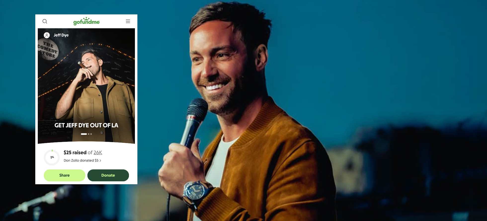 Comedian Jeff Dye is addressing the controversy surrounding his short-lived GoFundMe campaign, which he launched to help finance his relocation to Austin, Texas—only to delete it hours later amid a torrent of online criticism.