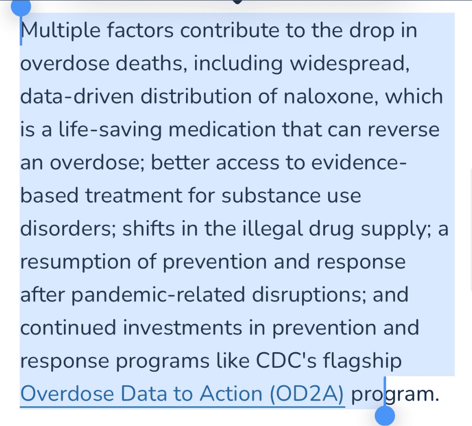 According to sources, one of the most concrete policy changes during that period was under the Biden administration: the expansion of access to naloxone. Making Narcan available over the counter in 2023 dramatically increased public access to a life-saving overdose reversal d**g, allowing families, first responders, and even bystanders to intervene immediately. That kind of harm-reduction measure directly aligns with a drop in fatal overdoses in a way speculative military action does not.