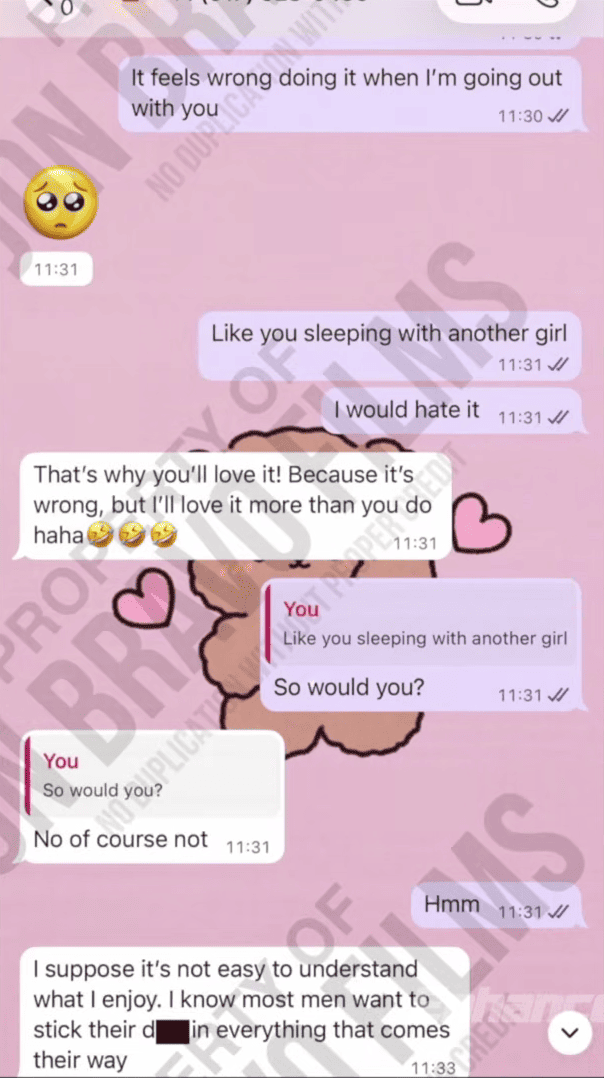 The released messages show a pattern of Wheels pressuring reluctant partners into situations that made them uncomfortable. In one conversation, a woman expressed hesitation, stating it “feels wrong” and made her question the relationship’s security.