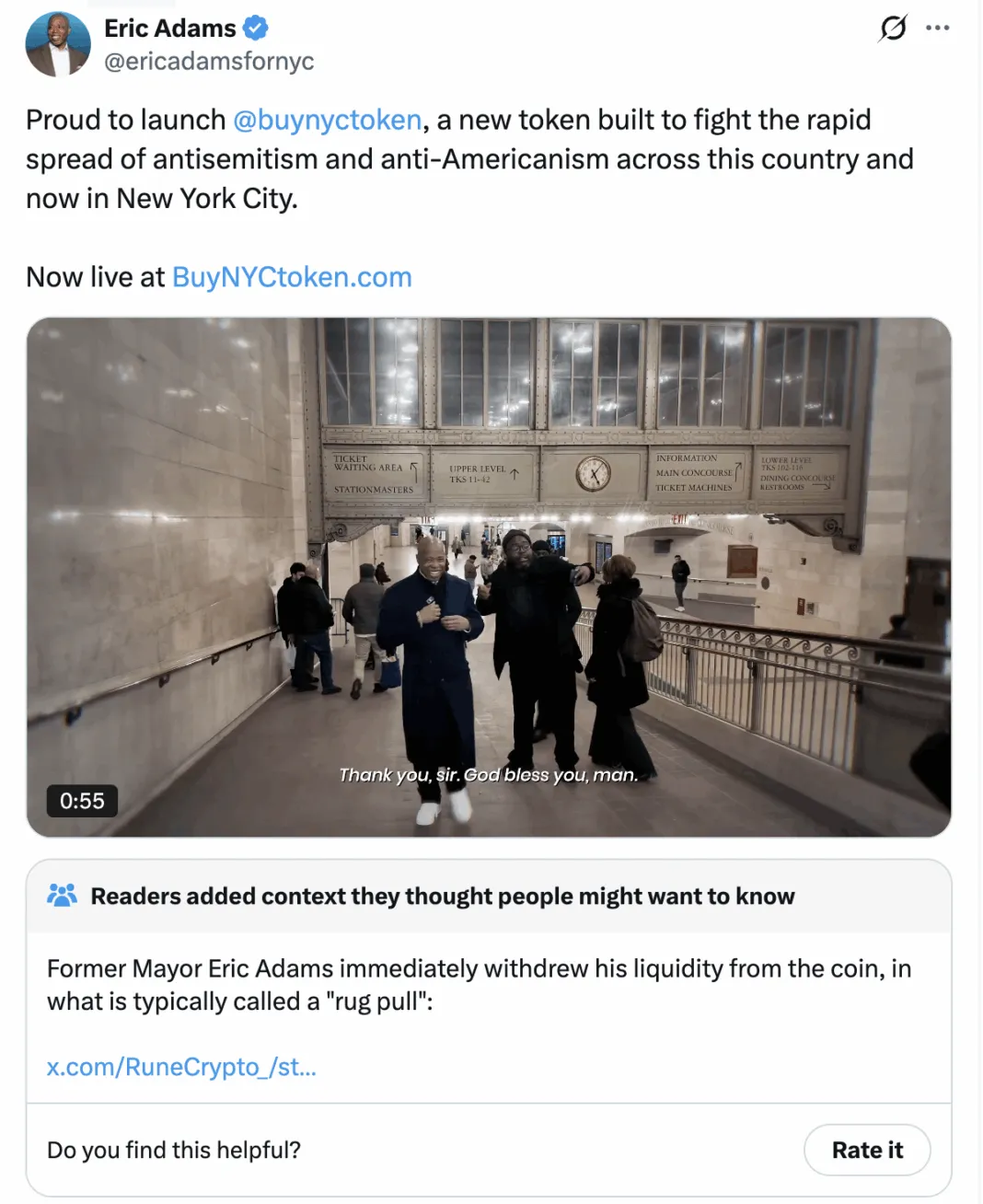 Eric Adams, currently facing bribery and campaign finance charges, is hardly positioned as a champion for everyday investors. The project released promotional videos featuring the mayor emerging from a taxi, suggesting the token could be used for fares. Yet the website’s terms explicitly state that “memecoins like New York City token are never intended to have any monetary value, any market value, utility, or functionality. Memecoins are not an investment.”