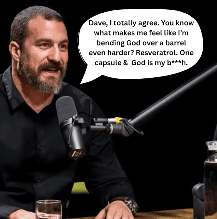 When Asprey appears on another influencer’s podcast like Huberman’s, that host doesn’t challenge the claim. Instead, they add their own: “Yeah, I’ve also found that my cognition gets better with resveratrol.”