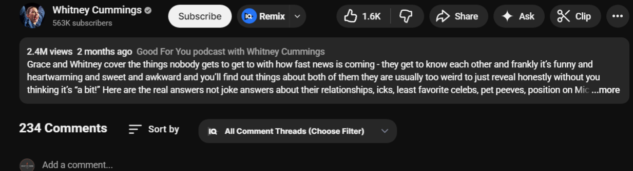 Whitney Cummings’ “Good for You” podcast has recently posted numbers that place it among the biggest comedy podcasts in the world, but the engagement metrics are raising serious questions. After pulling view counts comparable to Joe Rogan and double those of Matt and Shane’s Secret Podcast, many observers are openly questioning whether something unusual is happening behind the scenes.